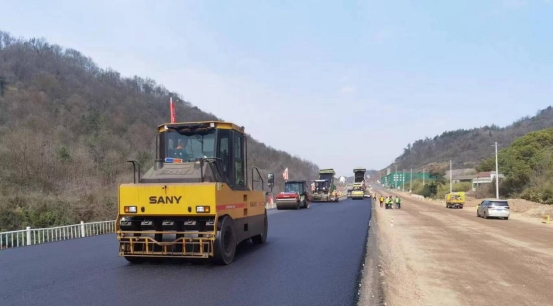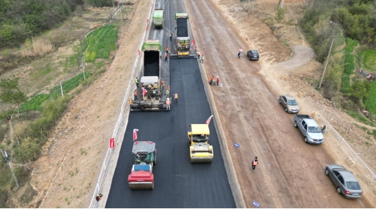 3月7日上午,在G330一期錢鋪段路面上,數(shù)臺攤鋪機和壓路機正在進行瀝青攤鋪和路面平整工作,經過工人們數(shù)個小時的連續(xù)奮戰(zhàn),順利完成試驗段瀝青下面層鋪筑任務,意味著G330銅陵段一級公路改建工程(一期)正式進入瀝青路面施工階段。