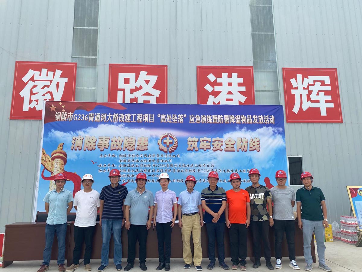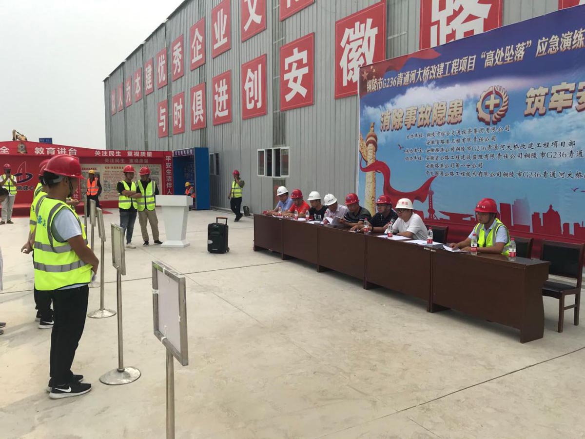 7月1日下午,集團(tuán)公司安全領(lǐng)導(dǎo)小組辦公室在G236青通河大橋攪拌站舉行高空墜落應(yīng)急演練,參加演練的單位有市質(zhì)監(jiān)局、集團(tuán)公司安全領(lǐng)導(dǎo)小組辦公室,華越、華信、藍(lán)頓、通悅子公司以及G236項(xiàng)目參建單位相關(guān)人員。