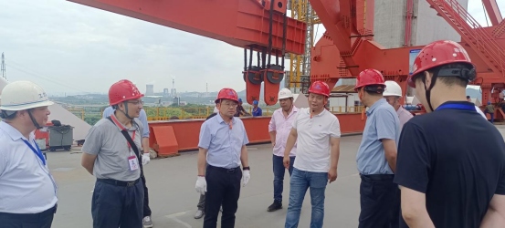 龍道寧一行先后前往G3公鐵橋項(xiàng)目起點(diǎn)、北岸智慧梁場(chǎng)、4號(hào)主墩、南北錨碇施工現(xiàn)場(chǎng)及項(xiàng)目終點(diǎn),實(shí)地查看了施工進(jìn)度情況,詳細(xì)了解了項(xiàng)目概況及施工推進(jìn)過(guò)程中的重難點(diǎn),并現(xiàn)場(chǎng)給與指導(dǎo)意見(jiàn)。