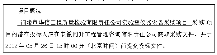 項目名稱:銅陵市華信工程質(zhì)量檢驗有限責任公司實驗室儀器設(shè)備采購項目