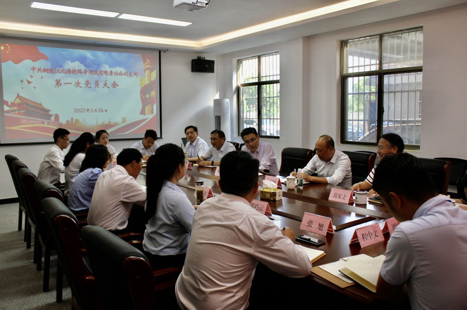 5月26日下午,江北港鐵路專用線公司黨支部第一次黨員大會(huì)在公司一樓會(huì)議室隆重召開。集團(tuán)公團(tuán)總經(jīng)理周文勝出席會(huì)議并作重要講話,集團(tuán)公司黨委副書記方勁松,集團(tuán)公司總工程師,江北港鐵路公司董事長、總經(jīng)理張葉來等領(lǐng)導(dǎo)同志參加會(huì)議。會(huì)議由公司副總經(jīng)理高家立主持,參會(huì)黨員共12人,其中有選舉權(quán)的黨員9人。
