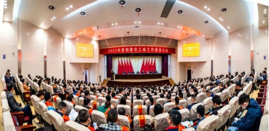 3月10日上午,2022年度銅陵市工會(huì)工作頒獎(jiǎng)大會(huì)在銅官區(qū)行政會(huì)議中心舉行,會(huì)議表彰2022年取得優(yōu)異成績(jī)的先進(jìn)集體和個(gè)人。市人大常委會(huì)副主任、市總工會(huì)主席陳昌生出席會(huì)議并講話。市總工會(huì)黨組書記、副主席何民主主持會(huì)議。市紀(jì)委監(jiān)委駐市人大機(jī)關(guān)紀(jì)檢監(jiān)察組組長(zhǎng)張克華,市總工會(huì)黨組成員、副主席朱永宏、吳蒲江、伍永勝,市總工會(huì)兼職副主席王利勝、方凱,各縣、區(qū)總工會(huì)主席、黨組書記、副主席參加會(huì)議。集團(tuán)公司工會(huì)作為獲獎(jiǎng)先進(jìn)集體參加會(huì)議。