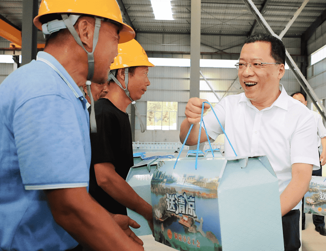 連日來(lái),銅陵持續(xù)晴熱高溫,給一線(xiàn)職工帶來(lái)很大考驗(yàn)。7月15日上午,市委書(shū)記丁純深入我公司部分項(xiàng)目現(xiàn)場(chǎng),實(shí)地調(diào)研項(xiàng)目建設(shè)情況,看望慰問(wèn)堅(jiān)守崗位的一線(xiàn)職工,代表市委、市政府向全市奮戰(zhàn)在高溫一線(xiàn)的廣大職工表示慰問(wèn)和感謝。市委常委、秘書(shū)長(zhǎng)、宣傳部部長(zhǎng)潘榮華,集團(tuán)公司黨委書(shū)記、董事長(zhǎng)何成龍參加。