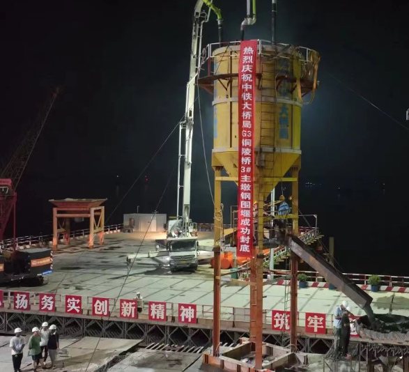 8月10日凌晨5時,經(jīng)過數(shù)個日夜的連續(xù)澆筑,G3銅陵長江公鐵大橋3號主墩鋼圍堰水下封底順利完成,標(biāo)志著大橋北岸主墩即將進(jìn)入承臺施工階段,為后續(xù)塔柱及上部結(jié)構(gòu)施工奠定了堅實(shí)的基礎(chǔ)。