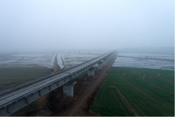 截至目前,江北港鐵路專用線項目已順利預(yù)制T梁497片,占設(shè)計總數(shù)的41.7%,順利架設(shè)376片,約占總數(shù)的31.5%。
